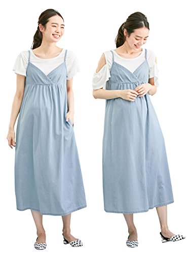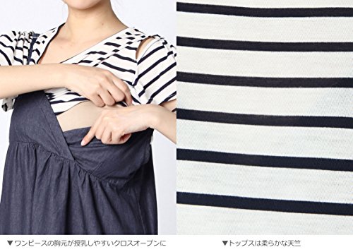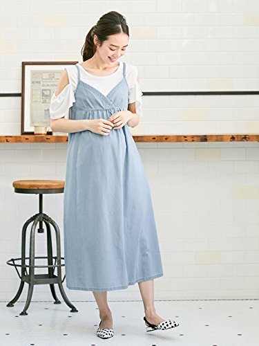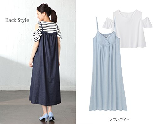 犬印本舗 fairy フェアリー マタニティ ワンピース 授乳しやすい 2WAY オフショル Tシャツ × デニム キャミ ワンピ セット 妊婦服 産前 産後 半袖 M~L オフホワイト 22668 22668302