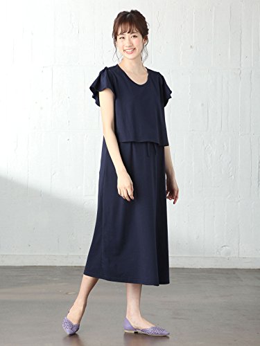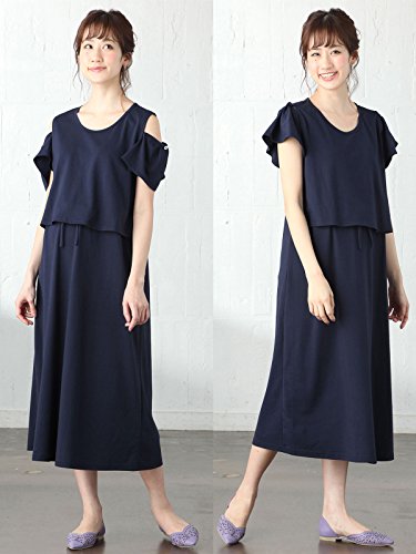犬印本舗 fairy フェアリー マタニティ ワンピース 授乳口付き 2WAY オフショル ドッキング ワンピ 授乳服 産前 産後 半袖 M~L ネイビー