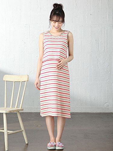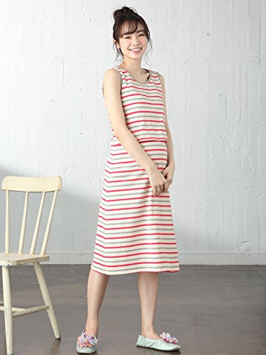 犬印本舗 fairy フェアリー マタニティ ワンピース 授乳口付き カップ付き ノースリーブ ワンピ 産前 産後 授乳服 M~L レッドボーダー