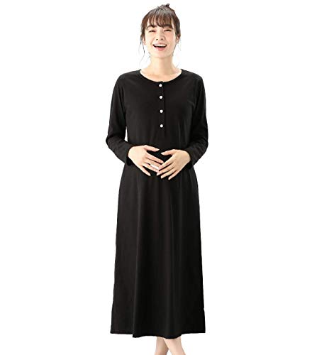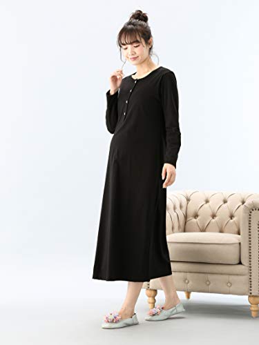 犬印本舗 Fairy フェアリー マタニティ 授乳しやすい ブラカップ付 マキシ ワンピース パジャマ 授乳服 長袖 M~L ブラック 22914202
