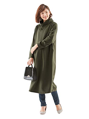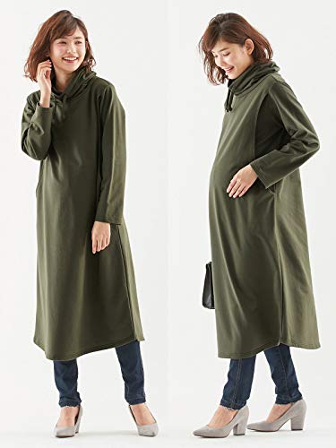 犬印本舗 Fairy フェアリー 授乳口付 あったか 裏起毛 マキシ ワンピース 授乳服 産前産後 長袖 パーカー M~L カーキ 22916202