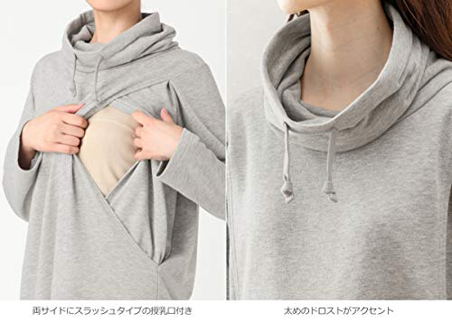 - ●【ワンマイルウェアに使える、あったか裏毛のワンピース】ふわふわの肌触りが魅力の裏起毛素材を使用。ゆるっとしたネックデザインが表情をやさしく見せてくれるワンピースです。両サイドにスラッシュタイプの授乳口が付いています。