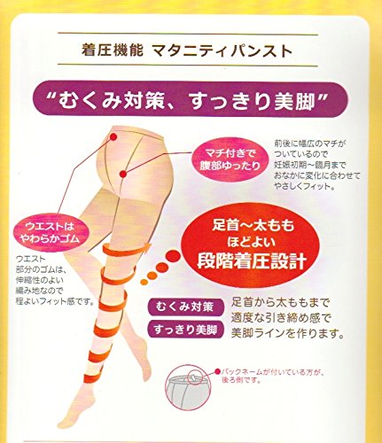 ・むくみ対策&足首から太ももまで適度な引き締め感で、美脚ラインを作ります♪ ・足首から太ももまで程よい段階着圧設計。 ・ウエスト部分のゴムは伸縮性の良い編地なので、締め付けず程よいフィット感です。 ・前後に幅広のマチが付いているので、妊娠初期~臨月までお腹の変化に合わせて優しくフィットします。