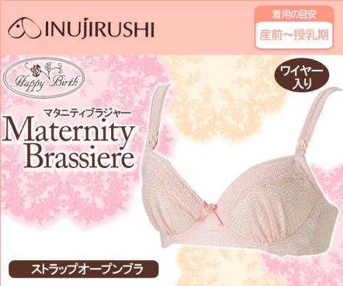 【犬印】マタニティ 【産前・産後兼用】ストラップオープンマタニティブラジャー(Fカップ)~ワイヤータイプ~BR-1229 (F70, ピンク(P))