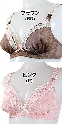 ジャガードの水玉柄とフリルが可愛いノンワイヤーブラ。 4段階ホックでバストのサイズ変化に対応しました。 地模様(ジャガード)の水玉柄に細幅のフリルレース をあしらったキュートなノンワイヤーブラ♪ ストラップ部分にもレースをあしらっています。 カップ内側は肌あたりが良くやさしい着け心地で、 ストラップは、授乳時にも肩落ちしにくい、 首振り機能付きのストラップオープン。 ホックは4段階のリフォームホックで変化するバストに対応! パッド無/パッド受けなし バックホック/2列4段 ※産前から授乳期まで兼用してご使用いただけます。 マタニティーショーツ(SH-2439)とコーディネイトできます