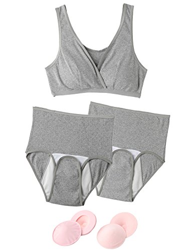 授乳に便利なハーフトップ&産褥ショーツ2枚&カバー付きのパッドとスペアパッドの5点が入ったお得なセットです。