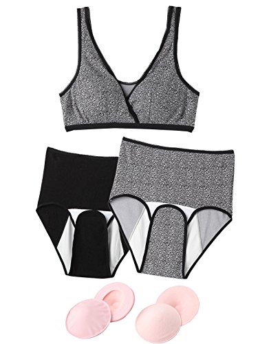 授乳に便利なハーフトップ&産褥ショーツ2枚&カバー付きのパッドとスペアパッドの5点が入ったお得なセットです。