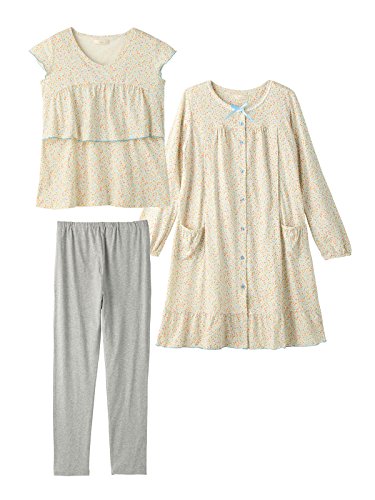 犬印本舗 Fairy フェアリー マタニティ パジャマ 授乳口付き フラワー プリント 2トップ ナイティ 3点 セット 妊婦服 産前 産後 長袖 半袖 前開き アジャスター調節可 M ~ L サックス 21892 21892202
