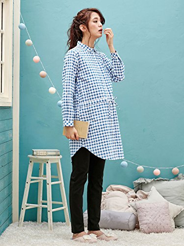 犬印本舗 Fairy フェアリー マタニティ パジャマ 授乳口付き 授乳 当て布つき サッカー チェック ナイティ 妊婦服 産前 産後 長袖 前開き アジャスター調節可 M ~ L ブルー 21897 21897102