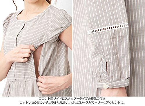 - ●【デリケートな肌にも優しいコットン100%素材】先染めのコットン100%素材を使い、ナチュラルな風合いに仕上げたパジャマです。はしごレースなど、細部のディテールにもこだわりました。半袖のトップスは、フロントの両サイドにスナップタイプの授乳口付き。パンツはサイズの調整が簡単にでき、妊娠初期から産後まで使えます。