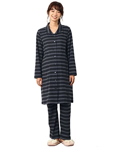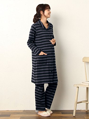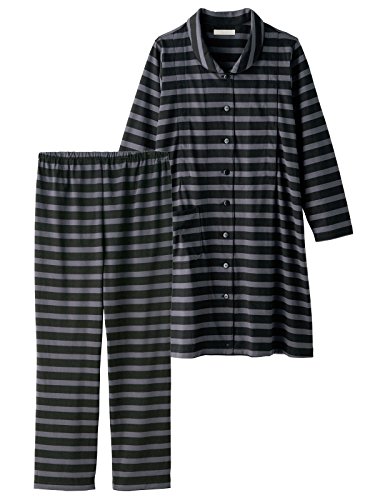 犬印本舗 Fairy フェアリー マタニティ パジャマ 授乳口付き ボーダー ナイティ 妊婦服 産前 産後 長袖 前開き M ~ L ブラック 22138 22138202
