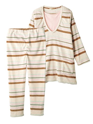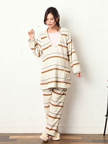 犬印本舗 fairy フェアリー マタニティ パジャマ 授乳口付き フリース ハウスウェア 妊婦服 産前 産後 あったか 長袖 M ~ L クリーム ボーダー 22141 22141202