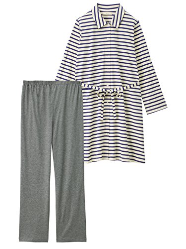 - ●【産前~産後まで使えるママの声から生まれたカットソーボーダー長袖パジャマ】ワンピースはパンツなしでも着られる長め丈で産院着に最適。定番人気のボーダーで、カジュアルな雰囲気が楽しめます。胸元のボタンがスナップなので授乳もスムーズです。