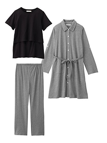 犬印本舗 fairy フェアリー マタニティ パジャマ 授乳口付き 3点セット ママの声から生まれた 添い乳 らくちん 2トップ ナイティ 産前 産後 授乳服 出産準備 半袖 長袖 M~L ブラック 22587 22587302