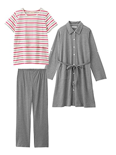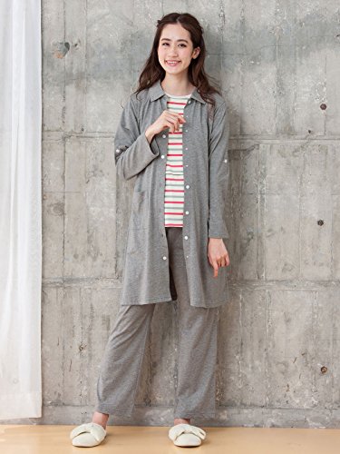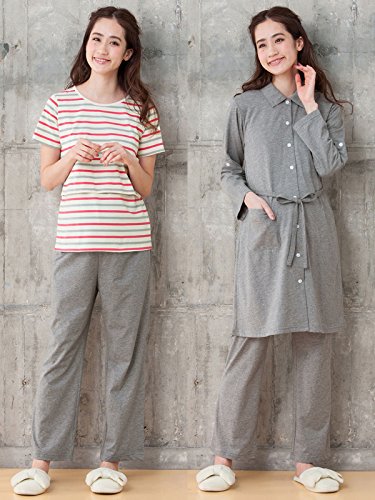 犬印本舗 fairy フェアリー マタニティ パジャマ 授乳口付き 3点セット ママの声から生まれた 添い乳 らくちん 2トップ ナイティ 産前 産後 授乳服 出産準備 半袖 長袖 M~L グレー 22587 22587102