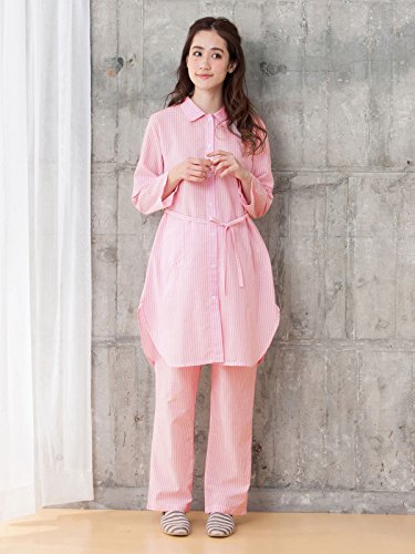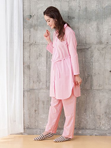 犬印本舗 fairy フェアリー マタニティ パジャマ 授乳しやすい ママの声から生まれた 先染め ストライプ ナイティ 産前 産後 妊婦服 前開き 長袖 M~L ピンク 22583 22583202