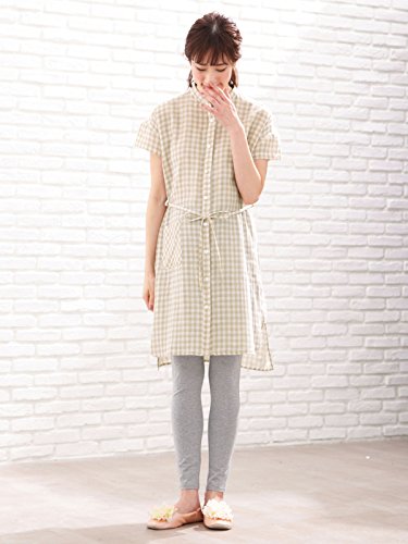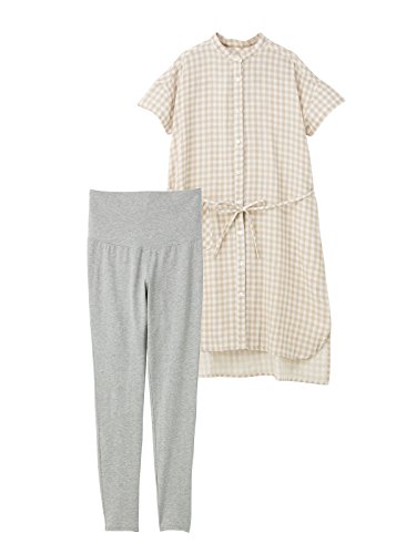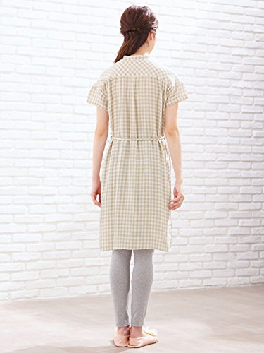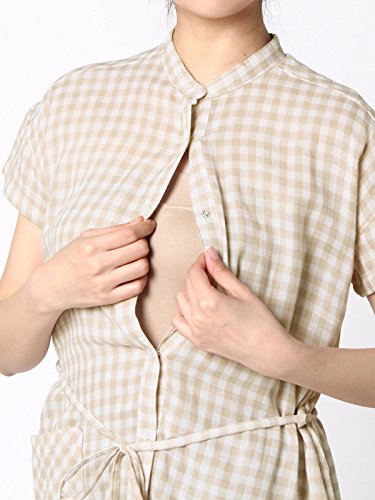 犬印本舗 fairy フェアリー マタニティ パジャマ 授乳口付き ママの声から生まれた Wガーゼ ギンガムチェック 半袖 ナイティ 産前 産後 前開き 入院 授乳服 M~L ベージュ