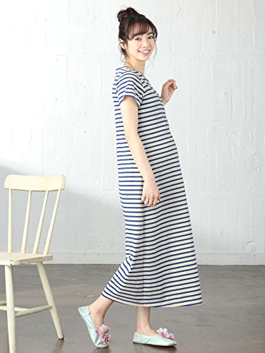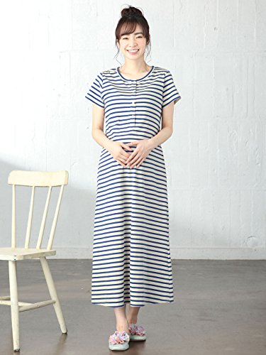 犬印本舗 fairy フェアリー マタニティ ワンピース 授乳しやすい カップ付き マキシワンピ 産前 産後 妊婦服 半袖 M~L ブルーボーダー