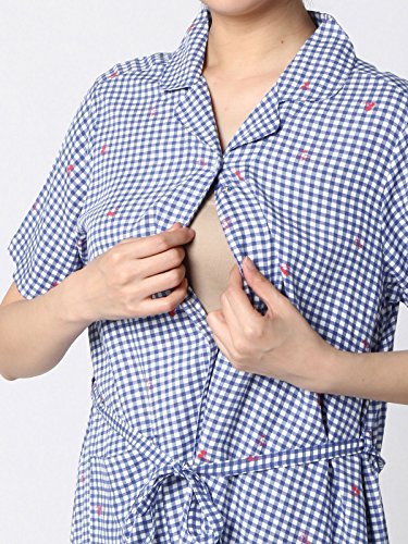 - ●【産前~産後まで使える授乳がしやすいレーヨンチェック&チェリー柄プリントパジャマ】パンツなしでも着られる長め丈や、ベッドの上で寝ながらの着替え、診察に便利な前開きデザインで産院着にぴったり。胸元がスナップボタンになっているので授乳も簡単です。ウエストリボンですっきりとしたシルエットが楽しめます。