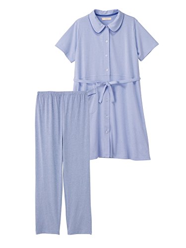 犬印本舗 fairy フェアリー マタニティ パジャマ 授乳しやすい カットソー 半袖 丸衿 ナイティ 産前 産後 妊婦服 入院 前開き セット商品 M~L ブルー