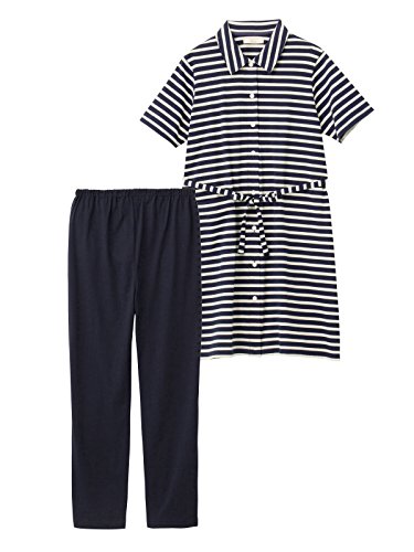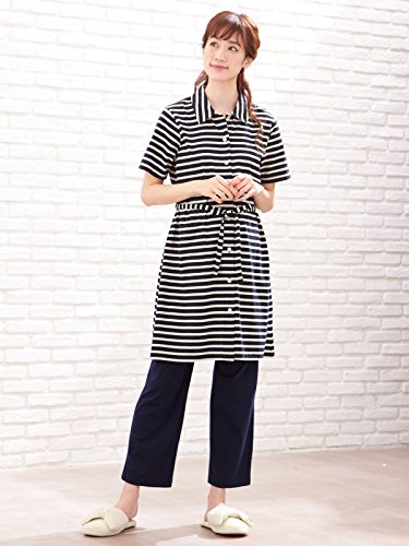 犬印本舗 fairy フェアリー マタニティ パジャマ 授乳しやすい ママの声から生まれた カットソー ボーダー 半袖 ナイティ 産前 産後 入院 前開き 妊婦服 セット商品 M~L ネイビーボーダー