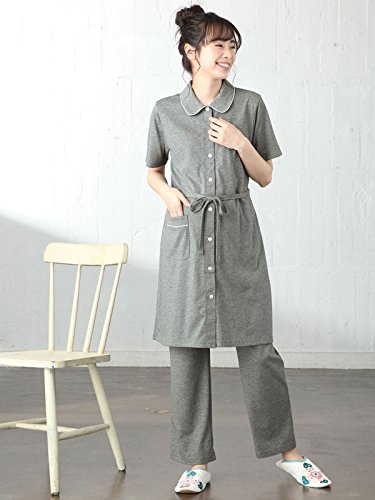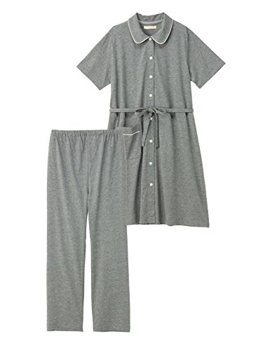 犬印本舗 fairy フェアリー マタニティ パジャマ 授乳しやすい カットソー 半袖 丸衿 ナイティ 産前 産後 妊婦服 入院 前開き セット商品 M~L グレー