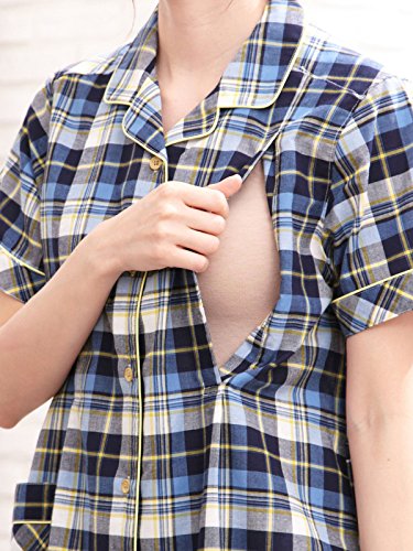 - ●【産前~産後まで使える授乳口付きママの声から生まれた先染めチェック柄半袖パジャマ】ベーシックなシャツデザインは、先染めチェック素材を使うことでクラス感アップ。両サイドにスナップタイプの授乳口付き。さりげなく入っているパイピングもポイントです。