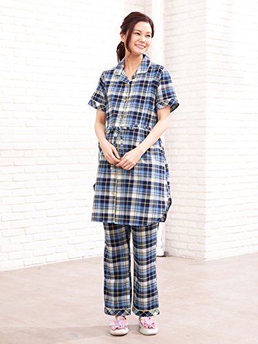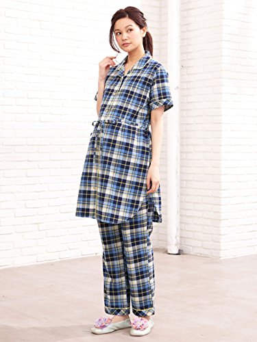 犬印本舗 fairy フェアリー マタニティ パジャマ 授乳口付き ママの声から生まれた 先染め チェック柄 半袖 ナイティ 産前 産後 入院 授乳服 前開き M~L ネイビー