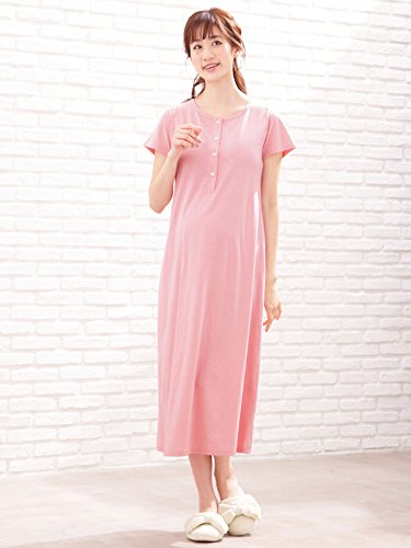 犬印本舗 fairy フェアリー マタニティ ワンピース 授乳しやすい カップ付き マキシワンピ 産前 産後 妊婦服 半袖 M~L ピンク