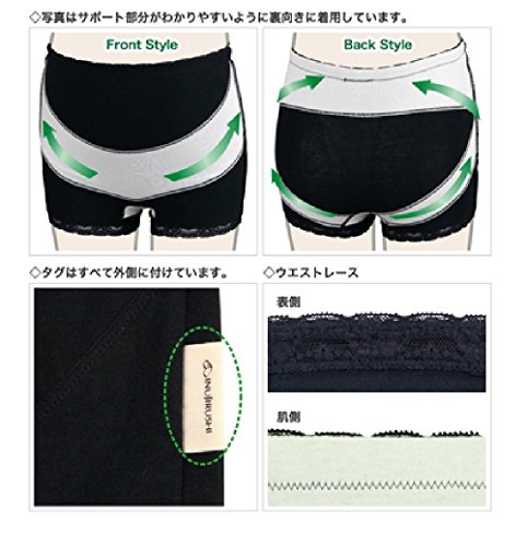 - クロッチ部分は厚めの当て布付。下腹部・腰・ヒップ下部を強化し、お腹とヒップアップをサポートします。タグは全て外側につけています。