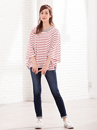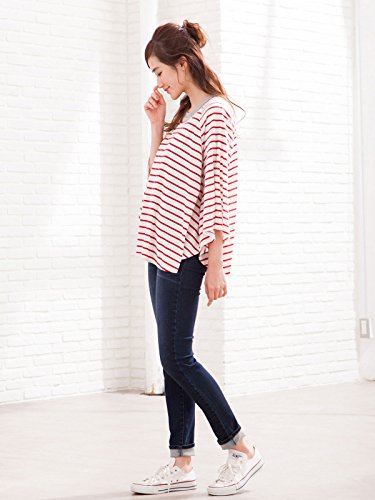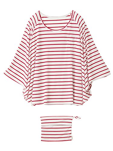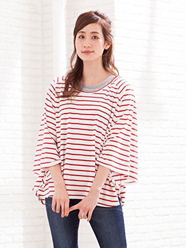 犬印本舗 fairy フェアリー マタニティ 授乳しやすい マタニティ期 から活躍 授乳ケープ にもなる便利な ポンチョ Tシャツ 産前 産後 妊婦服 M~L レッドボーダー 22580 22580102