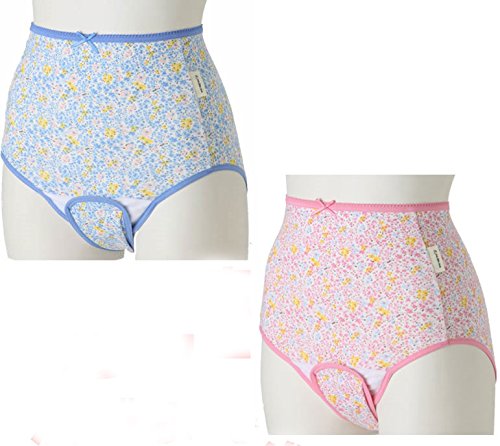 犬印本舗 色違い 産褥ショーツ お得用 2枚セット!キュートなフラワープリント L-LL ピンク&ブルー