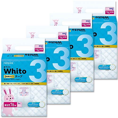 【ケース販売】 ネピア Whito テープ 新生児用(お誕生~5Kg) 3時間タイプ 304枚(76枚×4パック)