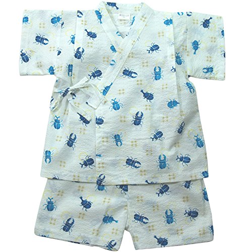 盛夏 甚平(ジンベイ) 【日本製】リップルプリント昆虫柄甚平スーツ 95cm/オフシロ NO.OG-1603