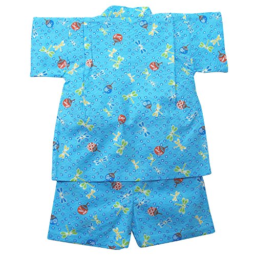 盛夏 甚平(ジンベイ) 【日本製】リップルプリントとんぼ柄甚平スーツ 95cm/サックスブルー NO.OG-1605