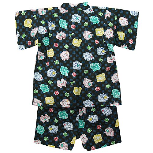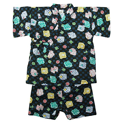 盛夏 甚平(ジンベイ) 【日本製】リップルプリント祭り甚平スーツ 90cm/ブラック NO.JT-620915
