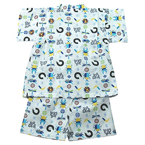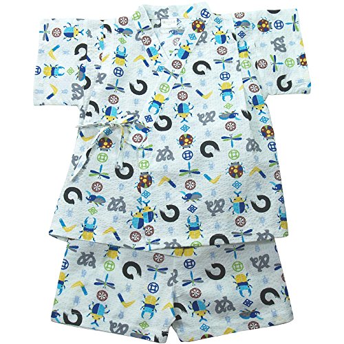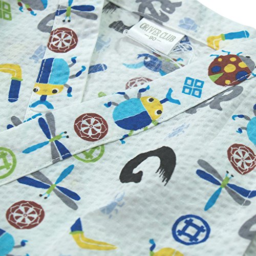 盛夏 甚平(ジンベイ) 【日本製】リップルプリントいろはに昆虫柄甚平スーツ 80cm/オフシロ NO.OG-1601