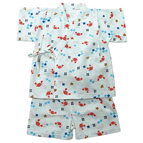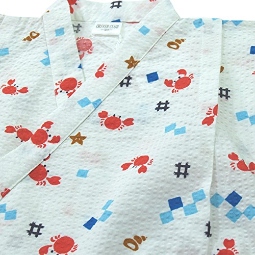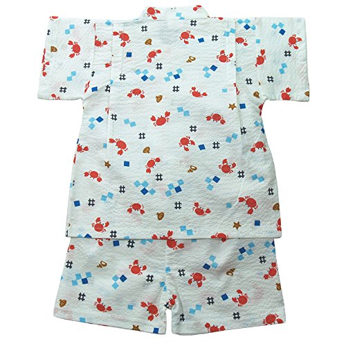盛夏 甚平(ジンベイ) 【日本製】リップルプリントカニ柄甚平スーツ 90cm/オフシロ NO.OG-1604