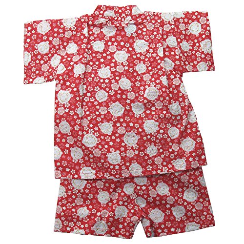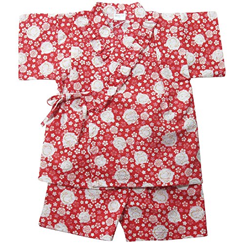 盛夏 甚平(ジンベイ) 【日本製】リップルプリントうさぎ&花柄甚平スーツ 95cm/アカ NO.OG-1612