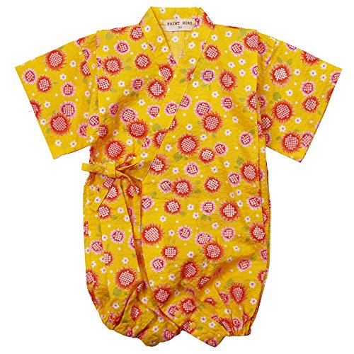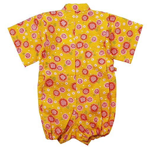 《盛夏 甚平》(ジンベイ) 日本製ベビー女児 リップル生地ヒマワリ総柄甚平ロンパス 80cm/イエロー NO.H-8125