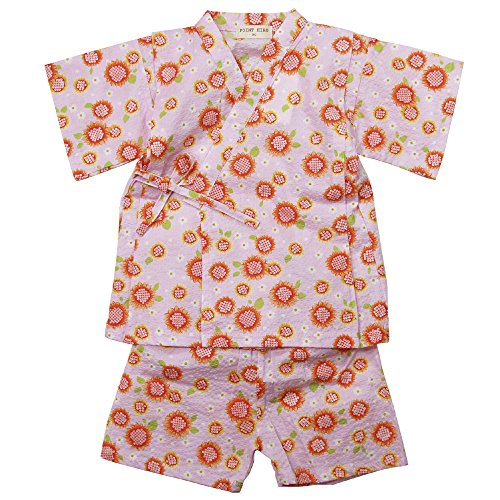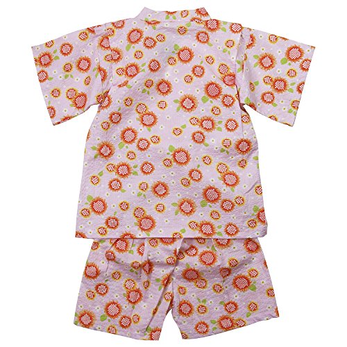 《盛夏 甚平》(ジンベイ) 日本製ベビー女児 リップル生地ヒマワリ総柄甚平スーツ 95cm/ピンク NO.H-8111