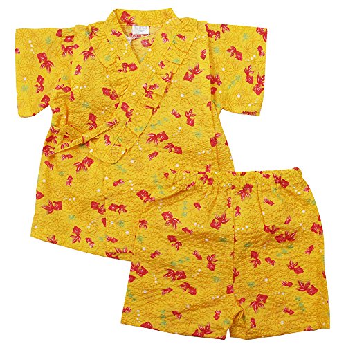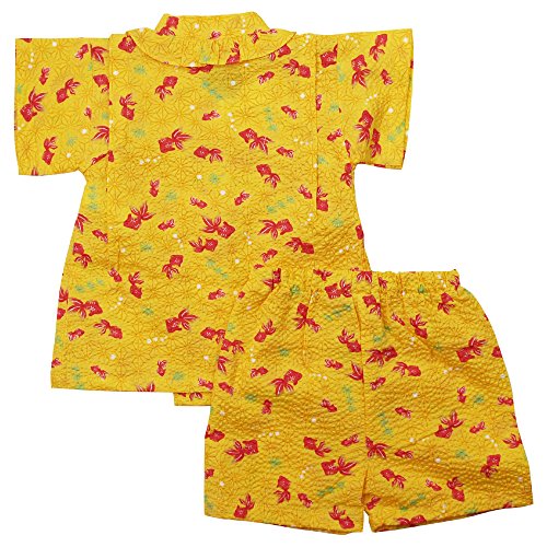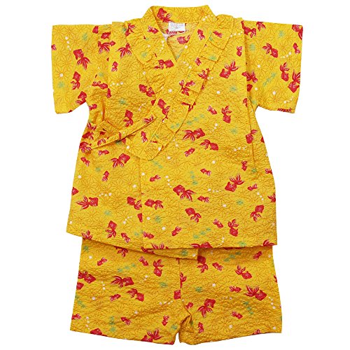 《盛夏 甚平》(ジンベイ) 日本製ベビー女児 リップル生地金魚総柄衿フリル甚平スーツ 80cm/イエロー NO.OG-75550
