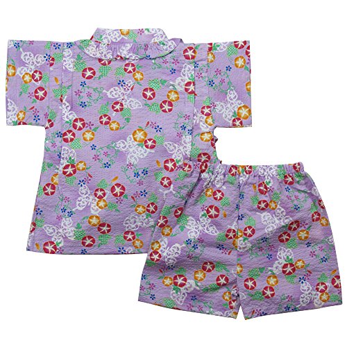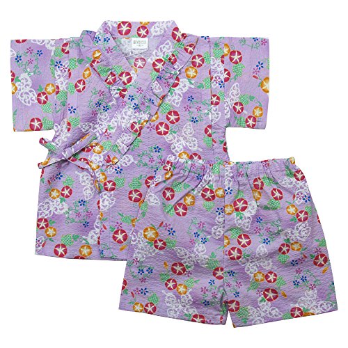 《盛夏 甚平》(ジンベイ) 日本製ベビー女児 リップル生地アサガオ総柄甚平スーツ 95cm/パープル NO.OG-75555