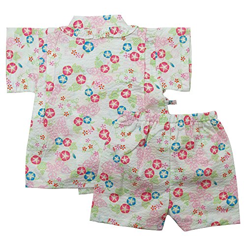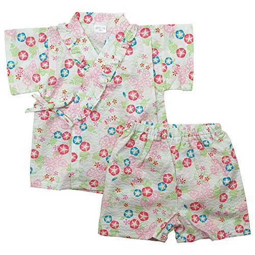《盛夏 甚平》(ジンベイ) 日本製ベビー女児 リップル生地アサガオ総柄甚平スーツ 95cm/オフシロ NO.OG-75555