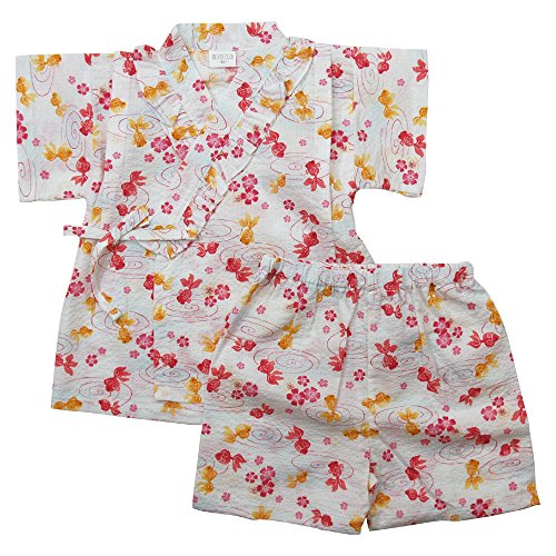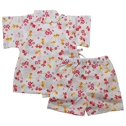 《盛夏 甚平》(ジンベイ) 日本製ベビー女児 リップル生地金魚&花柄衿フリル甚平スーツ 90cm /オフシロ NO.OG-75556