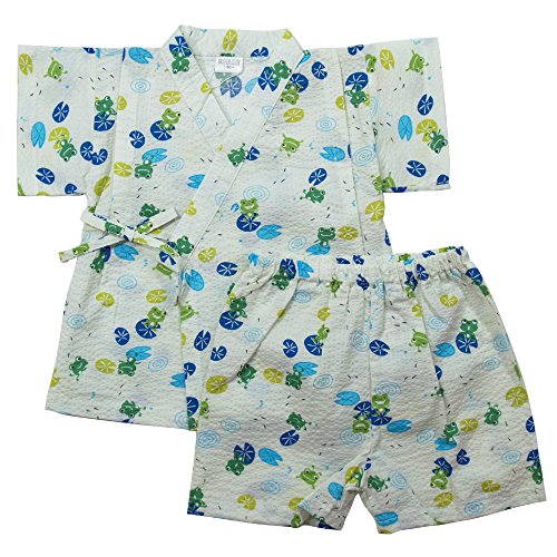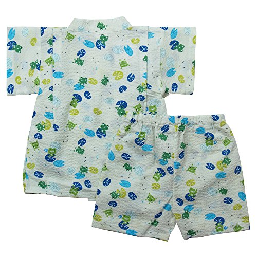 《盛夏 甚平》(ジンベイ) 日本製ベビー男児 リップル生地カエルさん総柄甚平スーツ 90cm/オフシロ NO.OG-75543