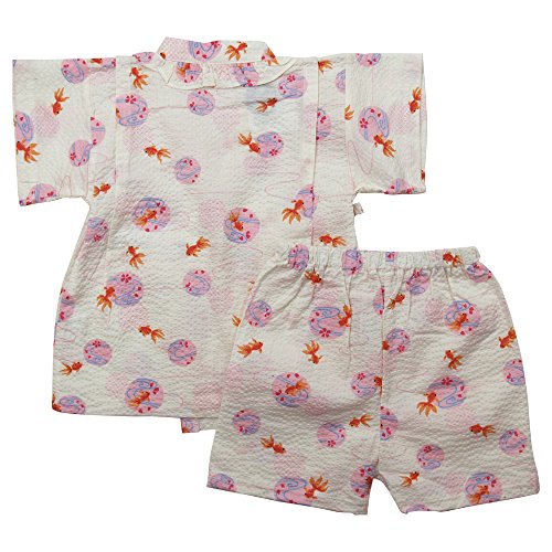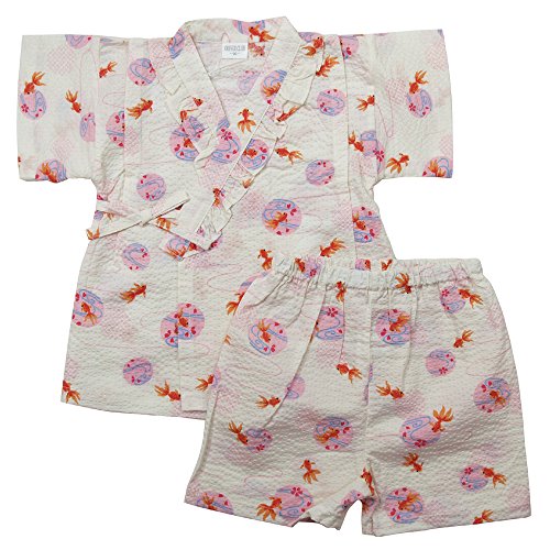 《盛夏 甚平》(ジンベイ) 日本製ベビー女児 リップル生地金魚&ドット柄衿フリル甚平スーツ 80cm/オフシロ NO.OG-75537