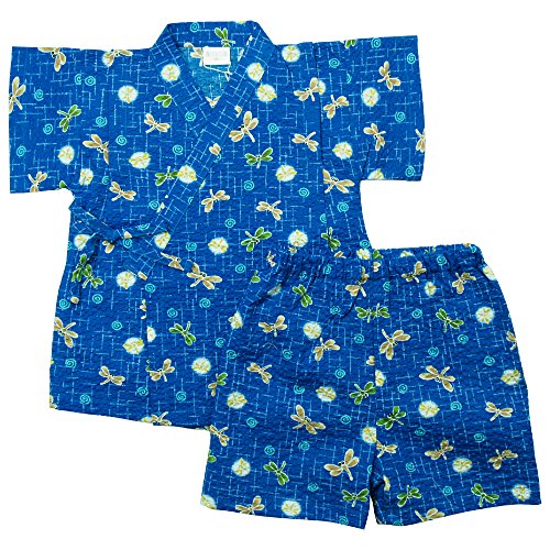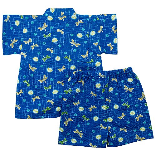 《盛夏 甚平》(ジンベイ) 日本製ベビー男児 リップル生地トンボ柄甚平スーツ 95cm /ネイビー NO.OG-75549