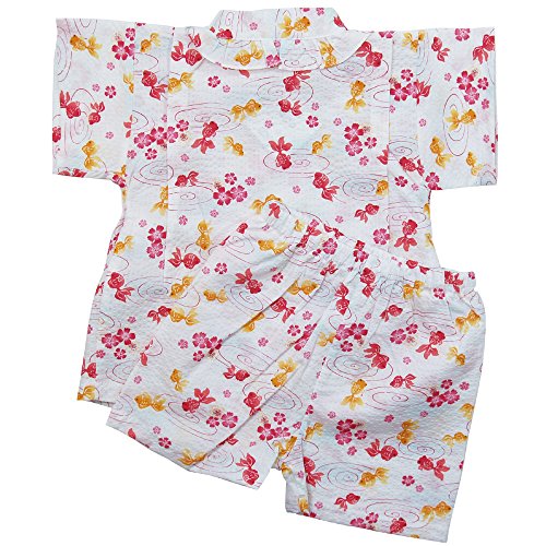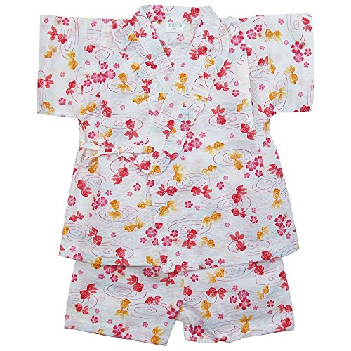 《盛夏 甚平》(ジンベイ) 日本製ベビー女児 リップル生地金魚と渦巻甚平スーツ 90cm/OW NO.OG-75576