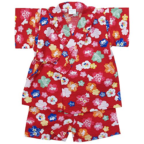《盛夏 甚平》(ジンベイ) 日本製ベビー女児 リップル生地うさぎと花甚平スーツ 80cm/RE NO.OG-75575